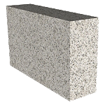 Mur de càrrega fabricat amb perpanys de pedra granítica tipus Gris Mondariz, de 45 cm d'alt, 20 cm de gruix i 75 cm de longitud, amb acabat rústic en la cara vista, acabat serrat en la resta de cares, cantells sense treballar, asseguts a junta oposada sobre jaç de morter de calç industrial, "CUMEN", color Natural Basto, M-15, subministrat en sacs. | ||